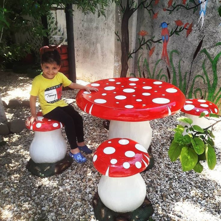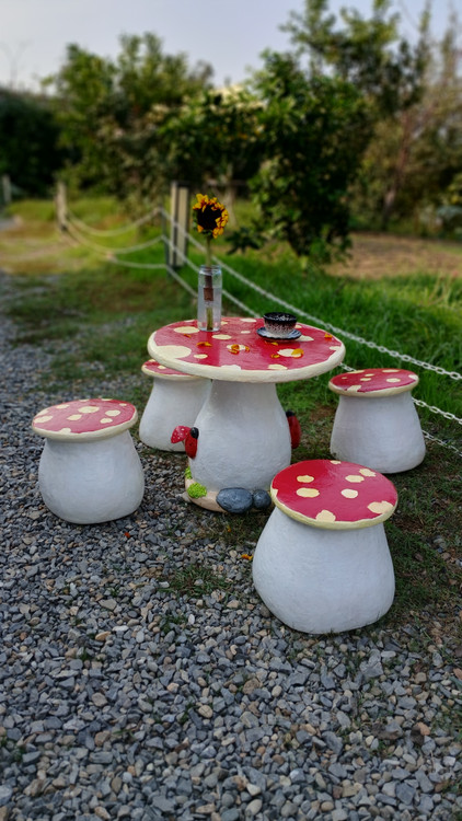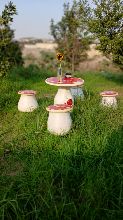 ست میز و صندلی فانتزی پاپیه ماشه طرح قارچ